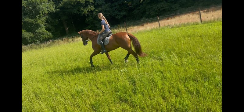 I am looking for a new home for my special mare Maxime – initially available for lease, with the possibility of purchase later on if the collaboration goes well. About Maxime: Maxime has been in my possession since she was three years old and has been trained by me with a lot of time and patience. She is easy-going, social, and sensitive to ride – an honest mare who gives her all for her person. However, she needs someone with a gentle touch, who is not only willing to ride but also ready to work with her and develop further. She is versatile: ✔ Dressage is her strength – she knows flying changes, half-passes, and is close to competing at the S level (the flying change to the right is the only one she struggles with) ✔ She loves trail rides and happily jumps small obstacles ✔ Well-behaved in handling, loadable, easy for the farrier, and gets along well with other horses Health & Care: Maxime is healthy and is regularly seen by the farrier, physiotherapist/osteopath. She is fully vaccinated and is cared for meticulously. What I wish for: I am initially offering Maxime for lease, preferably in the Gevelsberg area or nearby, so that I can continue to accompany her and, if desired, ride with her or provide lessons 1–2 times a week (I am a trained trainer and rider). A species-appropriate housing (open stable or box with daily turnout and social contact) is particularly important to me. With mutual trust and a good progression, a later purchase option is possible – conditions will be discussed individually. Important: 💡 I am looking for interested parties who are aware of the responsibilities and ongoing costs of owning a horse. Maxime is not a beginner's horse – she is looking for a clear, fair person with horse sense. Those who bring this will get a highly motivated, sensitive partner with quality, character, and a lot of heart. If you are seriously interested, I look forward to receiving a meaningful message with information about you, your stable, and your expectations. 💛 *I wish for someone for Maxime who appreciates, loves, and promotes her just as I have done all these years.* 💛