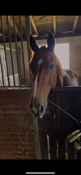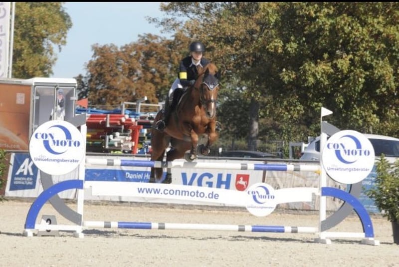 Due to a professional change, I unfortunately have to part with my 14-year-old Hanoverian mare Sunny. She has competed successfully up to M-level show jumping. In daily work, she is always well-behaved and has never shown any vices such as bucking or similar. She has a pleasant forward movement, which is always easy to handle. She can also be ridden very well without saddle or bit. In handling, she is absolutely calm and cooperative, allowing everything to be done with her. Since we have to pass through the village to the riding arena, she is familiar with traffic including tractors, cyclists, cars, trucks, children, dogs, etc., and remains very relaxed and composed in such situations. She is simply a fun horse for everyone. I can see Sunny fitting well into an ambitious leisure riding program or lower-level jumping. I would also consider selling her as a riding school or lesson horse. She has been regularly vaccinated and dewormed. Additionally, she is shoe- and loading-friendly. Price is secondary to her well-being. Please feel free to contact me for further questions.