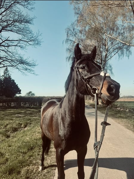 Wir suchen ,durch zeitliche und private Änderungen, ein 5 Sterne Zuhause für unsere liebevolle Hannoveraner Stute ,,Ricarda‘‘. Rike ist 14 Jahre alt, hat ein Stockmaß von 168cm und ist abstammend von Riccidoff x Royal Dance. Bei uns wurde Rike vielseitig eingesetzt, ob als Springbegleiter, Vierecktänzer, Spaziergänger ,oder auch einfach zum Quatsch machen im Gelände- auch auf dem Platz. Sie war bei allen Ideen motiviert dabei, und macht jeden Quatsch mit. Sie bringt bereits Turniererfahrung mit und wurde auch schon in der Dressur bis A* vorgestellt- dass wurde bei uns ,jedoch nicht weiterhin gefördert. Rike hat mittlerweile den Spaß am Springen gefunden, wobei Sie jedoch einen Reiter benötigen, der Ihr Mut zuspricht und bei Ihr ist. Niveau A-L ist dort jedenfalls machbar. Traktor, kleine Kinder, Hunde, laute Geräusche… ist für Sie absolut kein Problem. Auch Verladefromm. Derzeit ist Sie komplett beschlagen. Ricarda ordnet sich in der Herde direkt ein und ist ein Rangniedriger Begleiter- komplett verträglich mit jedermann. Bei Interesse meldet euch super gern!!