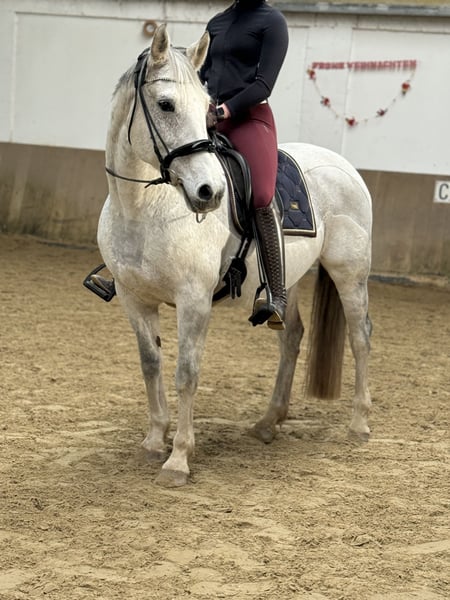 Verkaufe schöne Hannoveraner Stute – Merkmale: - Rasse: Hannoveraner - Geschlecht: Stute - Geburtsjahr: 2009 - Farbe: Fliegenschimmel - Stockmaß: ca. 160 cm - Einsatzgebiet: Freizeit/Zucht Sie überzeugt durch ihr angenehmes Temperament, ihre gute Bewegungsqualität und ihre zuverlässige Art. Ideal für Ausritte, Spaziergänge und entspannte Runden im Gelände. Bei Interesse oder für weitere Informationen stehe ich gerne zur Verfügung. Kontaktieren Sie mich, um mehr über diese wundervolle Freizeitpartnerin zu erfahren!