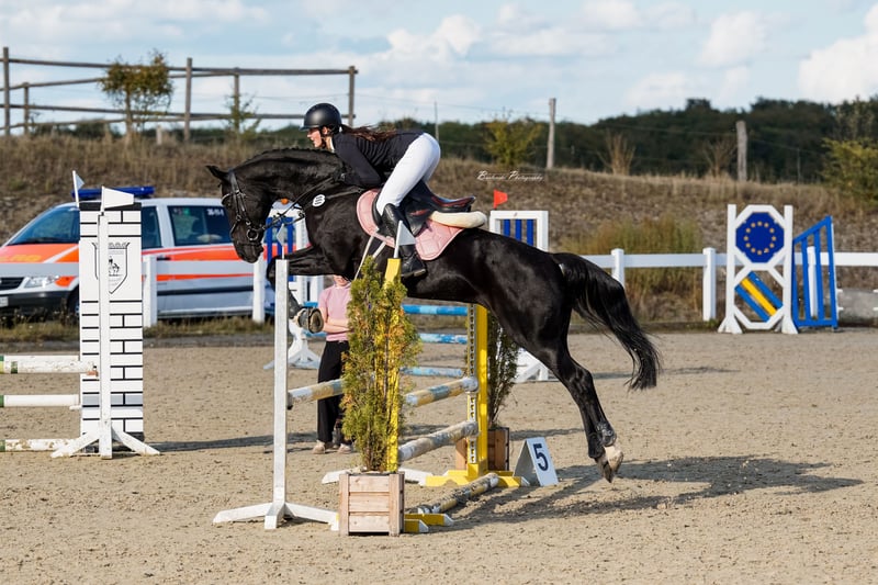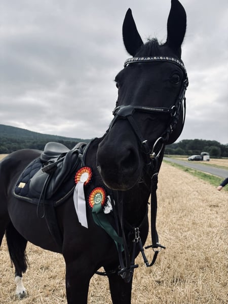 🖤 Traumhafte Rappstute sucht ihr Herzenszuhause 🖤 Mit schwerem Herzen, aber im Sinne des Pferdes, suche ich für meine wundervolle Stute Sarabi ein neues, liebevolles Zuhause. Sie wurde am 25.04.2010 geboren, ist 1,64 m groß und überzeugt nicht nur durch ihre Erscheinung, sondern vor allem durch ihr angenehmes Wesen. Aufgrund einer eigenen Knieverletzung, die mich für mindestens sechs Monate außer Gefecht setzt, kann ich Sarabi aktuell nicht so fördern und begleiten, wie sie es verdient. Deshalb wünsche ich mir für sie einen Menschen, der ihr die Aufmerksamkeit, Bewegung und Fürsorge schenken kann, die sie braucht. Sarabi kennt sowohl den Offenstall als auch die Boxenhaltung mit täglichem Auslauf. In der Herde zeigt sie sich ehr Ranghoch aber niemals aggressiv anderen Pferden gegenüber. Sie ist absolut alltagstauglich: Autos, Hunde, landwirtschaftliche Maschinen, Kühe, Schafe, Hühner und Kinder bringen sie nicht aus der Ruhe. Im Umgang ist Sarabi ein echter Schatz – freundlich, unkompliziert und zuverlässig. Beim Reiten ist sie stets brav, ohne Buckeln oder Steigen. Im Gelände geht sie entspannt in der Gruppe, testet jedoch hin und wieder daher kein Anfängerpferd. Zudem ist sie schmiede- und verladefromm. Derzeit läuft sie vorne mit zwei Eisen, die sie bei regelmäßiger Arbeit benötigt. Sarabi war zwei Jahre lang meine Reitbeteiligung und gleichzeitig Therapiepferd, bevor ich sie Ende 2024 übernommen habe – sie kennt also verschiedenste Reiter und Situationen. Bei der AKU zeigten sich leichte arthrotische Veränderungen, die laut Nachuntersuchung stabil und unproblematisch sind und sie in keiner Weise einschränken. Ausgebildet ist Sarabi in Dressur und Springen bis Klasse L und wurde im Springen und der Dressur bis Klasse A auf Turnieren vorgestellt. Da ihr der Turniersport auf Dauer zu viel Stress bereitet, wünsche ich mir für sie ein Zuhause ohne sportlichen Leistungsdruck – gerne als Freizeitpartner, Lehrmeisterin oder wertvolle Zuchtstute. Sie hatte bereits ein Fohlen und bringt eine sehr gute Abstammung mit. Dies ist kein Notverkauf. Ein passender Platz ist mir wichtiger als der Preis. Bei ernsthaftem Interesse freue ich mich sehr über eine Nachricht. Videos sende ich gerne auf Anfrage. 📞 Kontakt: 0174 2169059