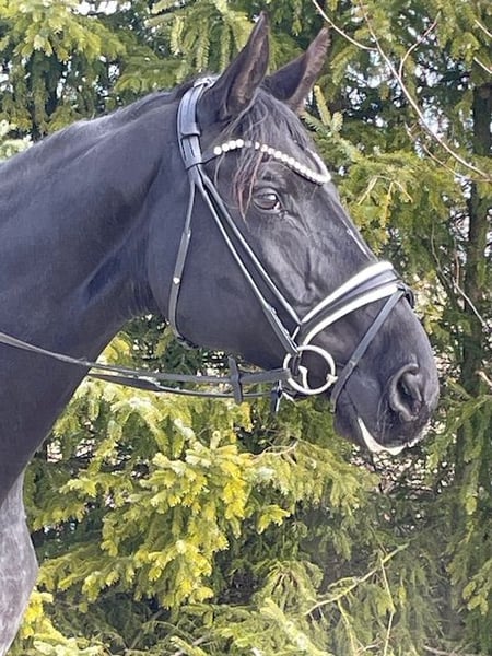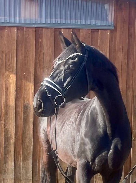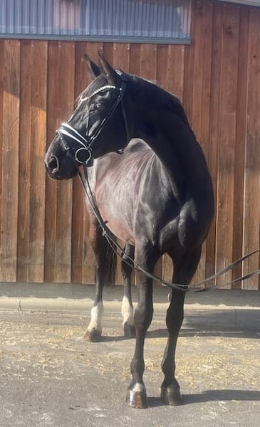 Batida kam 2025 tragend zu uns und hat im April 2025 ein tolles Hengstfohlen von Von und Zu geboren. Nach dem Absetzen im Oktober 2025 haben wir sie schonend wieder angefangen zu arbeiten. Sie zeigte sich vom ersten Tag an immer sehr artig und motiviert wieder eine Aufgabe zu haben. Wir arbeiten sie in der Hauptsache dressurmäßig, fangen gerade an die Lektionen wieder aus zu graben. Sie hat schon ihre ersten Runden mit unseren Reitschülern gedreht und ist super artig im Gelände unterwegs. Sie ist als Prämienstute beim Hannoveraner Verband eingetragen, hat 2014 die Stutenleistungsprüfung in Hannover abgelegt und hat einen gekörten Sohn. Batida hat erfolgreich an Reitpferde Prüfungen, Dressur Pferde A und L Prüfungen teilgenommen und hat Dressur Pferde M gewonnen. Batida ist regelm. entwurmt, vollständig geimpft und war beim Zahnarzt und beim Chiropraktiker. Sie lebt bei uns in der Zuchtstutenherde, hat Nachts eine Box und ist mit Ihren Freundinnen 8-16 h am Tag auf der Weide oder im Paddock. Sie kennt aber auch Offenstallhaltung und 24/7 Weide. Wir können sie uns sehr gut als Zuchtstute sowie als gehobenes Freizeitpferd vorstellen und geben sie nur in das allerbeste Zuhause ab. Für ein Kennenlernen mit evtl. Probe Reiten wird eine Gebühr in Höhe von 25 Euro, sofort in bar fällig.