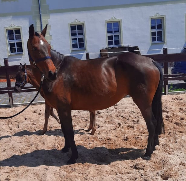 **Anuncio de venta: Yegua Hannoveriana** Se vende una hermosa yegua de cría Hannoveriana del año 2009. Tiene un elegante pelaje castaño y una altura de 162 cm. La yegua es una de las últimas yeguas de cría de la línea de sementales de Frühling. Su madre es hermana completa del antiguo semental de la región de Celle, Bogenschütze. Proviene de la conocida línea de yeguas Hannoverianas Noprara, que se remonta a la yegua ganadora de DLG, Duellgirl. Feronia completó su SLP como prueba de estación en Neustadt (Dosse) en 2013. Fue galardonada por la FN en 2019 como yegua de rendimiento de la sección D por su descendencia. Vendemos a Feronia como yegua de cría debido a la buena descendencia en el lugar. Aunque fue montada en su juventud y completó la SLP, no ha sido promovida más y es muy dominante, no siendo adecuada para principiantes. Por lo tanto, se vende como yegua de cría. Los jinetes experimentados podrían, por supuesto, volver a montarla poco a poco. Actualmente, Feronia tiene una potra de Royal Classic II a su lado y no ha sido cubierta nuevamente este año. Por lo tanto, la yegua solo podrá ser entregada a partir de principios de octubre. Si está interesado o necesita más información, no dude en ponerse en contacto conmigo. ¡Visítenos y convénzase usted mismo de esta maravillosa yegua!