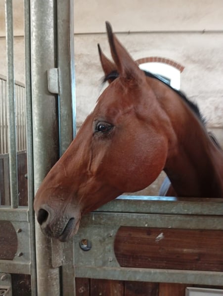 Canturana – Experienced Hanoverian Mare with Heart, Quality, and Excellent Health Canturana is a 17-year-old Hanoverian mare standing approximately 1.65 meters tall. She is fit, motivated, and has a heart of gold. She competed successfully up to M-level show jumping and is registered in the Hanoverian show jumping program. Despite her age, Canturana remains healthy, eager to perform, and full of zest for life. She is ideally suited as a schoolmaster for show jumping, for reintegration riders, ambitious young riders, or anyone seeking a reliable, experienced horse that always works honestly. From her bloodline, there is already a progeny currently competing up to 1.40 meters—proof of her quality and breeding strength. In handling, Canturana is friendly, balanced, and completely reliable. She is well-behaved in the field, familiar with lunging and ground work, and remains calm and composed even in new environments. An honest, characterful horse with many more beautiful years ahead—whether as a schoolmaster, leisure partner, or breeding prospect. ⸻ Profile: - Breed: Hanoverian - Age: 17 years - Height: approx. 1.65 m - Discipline: Show jumping up to M - Registration: Hanoverian show jumping program - Offspring: 1 foal, currently competing up to 1.40 m - Health: Excellent, no restrictions - Temperament: Calm, reliable, educational, pleasant to handle