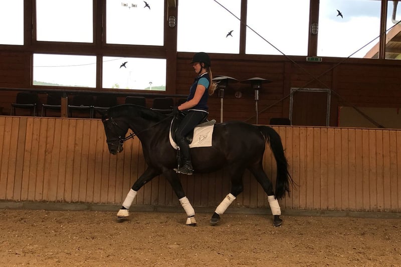 Visítenos y conozca a Ruby Dawn - ¡la perla negra de nivel avanzado (S)! Esta yegua fácil de montar, con tres aires básicos muy buenos y una alzada de 1,66 metros, está ahora entrenada hasta el nivel avanzado de doma clásica y tiene todo lo que el corazón de un jinete desea. Desgraciadamente, suele estar muy tensa en los concursos, por lo que no la hemos mostrado mucho, pero hace poco quedó segunda en una prueba de doma de nivel medio**. Ya sea para el jinete precavido al que le gustaría dar clases exigentes o para el jinete de ocio exigente en campo a través, Ruby Dawn es la compañera perfecta. Al manejarla y montarla, siempre tiene las ideas claras, es digna de confianza y fácil de manejar. También es fácil de forjar y cargar. Déjese convencer por el talento y el carácter de Ruby Dawn. Ruby Dawn está deseando encontrar un nuevo hogar donde seguir recibiendo apoyo y cariño.