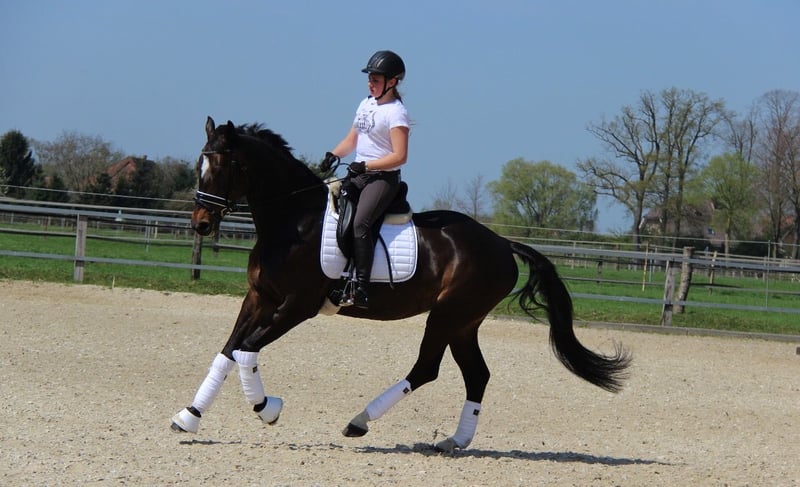 Urodzona 17.04.2009 Wysokość: 1,69 m Contendros Bube x Albatros Dobrze usposobiona, bez niepożądanych zachowań Zdjęcia rentgenowskie z 2021 roku dostępne W pełni nadająca się do jazdy W ciąży na czerwiec 2026 z Captain Jack Z ciężkim sercem zdecydowałam się sprzedać moją ulubioną klacz. Kupiona przeze mnie w wieku 6 lat. Od 2019 roku miała łącznie 4 źrebięta, zarówno od koni skokowych, jak i ujeżdżeniowych. Ostatnie z nich to Diamantenglanz z tego roku, które nadal jest w moim posiadaniu. Nie jest to exmoorka, jednak ma alergię, która w 99,9% nie jest dziedziczna, dlatego drapie się po grzywie i jest zmuszona do stosowania specjalnej derki przeciwalergicznej. Testy alergiczne są dostępne. W 2021 roku miała uraz ścięgna podudzia, przez co przez 1,5 roku nie była użytkowana w jeździe, co pozwoliło na jej wygojenie. Chętnie przed zakupem można skonsultować się z weterynarzem w sprawie wszystkich wcześniejszych leczeń. Priorytetem jest dla mnie dobro konia, nie cena. Wszystkie pytania chętnie przyjmę przez wiadomość.