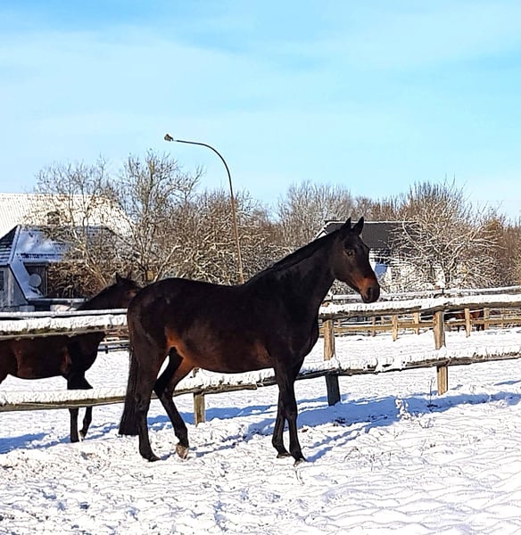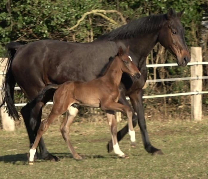 unsere Danny Sahne hat mir durchweg große und bewegungsstarke Fohlen geschenkt. Sie ist doppelt veranlagt und vererbt Vermögen in der Dressur, Springen und Vielseitigkeit. Sie war als Fohlen im Endring, wurde gut angeritten und hat uns 7 Fohlen geschenkt. Sie stammt aus einem alten ( bewährtem ) Mecklenburger Stutenstamm mit zahlreicjen gekörten Söhnen z.B. MIstral I, Mistral II Anilin I, Anilin II, Adgus, MMV Adler stammt ab von Adeps-Abglanz, MV Marlesko xx gibt den Vollblutanteil dazu. Danny Sahne befindet sich in einem altersentsprechenden Gesundheitszustand und ist lahmfrei. Ich suche für sie einen schönen Endplatz.