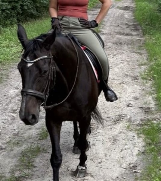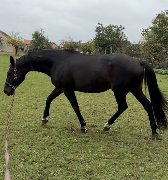 Moja kochana 17-letnia klacz (Hofrath x De Niro) szuka nowego, pięknego domu. Do tej pory wydała na świat trzy wspaniałe źrebięta (u poprzedniego właściciela), ostatnie w 2024 roku, a od sierpnia jestem jej sporadycznie jeździcie na terenie lub na pastwisku, także lonżuję ją. W obchodzie jest spokojna, czyszczenie kopyt również nie stanowi problemu. Podczas jazdy wymaga jeszcze trochę treningu – galopuję na lonży, co do tej pory ćwiczyłam tylko w ten sposób. Jej stęp jest pięknie energiczny i wygodny. Niestety, nie mam wystarczająco czasu na intensywniejszy trening – jeżdżę bardzo nieregularnie, czasami kilka razy w tygodniu, innym razem przez kilka tygodni w ogóle nie, a ona potrzebuje ciągłej pracy, ponieważ po przerwie od źrebięcia musi być jeszcze trochę podkręcona. Ma 1,73 m wzrostu. Jeśli wszystko będzie pasować, jej towarzysz (kuc, 20 lat, częściowo jeźdzony) może również zostać oddany razem. Priorytetem jest dla nas miejsce, nie cena – chętnie poznamy zainteresowanych.