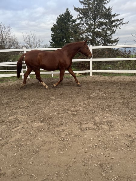 Hannoveraner Stute, 17 Jahre – aus Weltmeyer-Linie Ich verkaufe meine Stute schweren Herzens, da mein Herz mittlerweile mehr im Motorsport als im Reitsport liegt. • Alter/Abstammung: 17 Jahre, Weltmeyer-Abstammung, Stockmaß 1.70m • Gesundheit: auf einem Auge seit dem 4. Lebensjahr blind, (periodisch Augenentzündung wurde damals zumindest für das eine Auge zu spät entdeckt/ behandelt ) das gesunde Auge ist unauffällig (damals wurde Augenwasser getauscht). Das erblindete Auge ist noch drin und macht keine Probleme! (Muss im Somne eine fliegenmaske tragen ) Sie war bisher nie ernsthaft krank , keine Kolik bisher. • Nutzung: Kein Anfängerpferd, geeignet für erfahrene Reiter mit ruhiger Hand und klarer Ausstrahlung. • Charakter: Sensibel, benötigt einen Reiter, der ihr Sicherheit vermittelt. Hat man ihr Vertrauen gewonnen, ist sie ein absolutes Traumpferd. • Disziplin: Eher dressurorientiert, geht auch kleinere Sprünge. Gelände mit Begleitpferd möglich. • Haltung: Boxen- und Offenstallhaltung gewohnt. • Zucht: Bisher kein Fohlen. Sie ist reitbar auf dem Platz (auch wenn nebenan Pferde laufen), zeigt sich dort zuverlässig. Für den Freizeitbereich – insbesondere Dressur – bestens geeignet. Unter dem richtigen Reiter hat sie wirklich schöne Gänge und macht auch keinen Unsinn wie zb Buckeln . Bei mir und meiner Trainerin hat sie nie gebuckelt. Bei schwachen Reiter kann ein absetzen erfolgen. Diesen Fall hatten wir schon bei einem probereiten (bzgl Reitbeteiligung) Vollständig geimpft , Zähne werden Mitte Dez nochmal gemacht , Hufe werden alle 6 Wochen vom Hufpfleger bearbeitet . Als Zuchtstute auch super geeignet! Nur in beste Hände abzugeben! Alle Tieratzt Rechnung ab 2022 sind vorhanden und dürfen gerne eingesehen werden. Kein Notverkauf!! Keine Händler oder Schulbetrieb Anfragen! Preis ist inkl Zubehör (Sattel , Trense, Putzkoffer, Decken,) Da ich mich aus dem Reitsport komplett zurückziehen möchte!