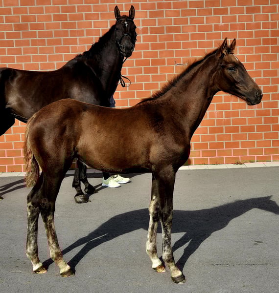 *** Bon Matilda *** For Sale! For sale is a promising Hanoverian dark chestnut mare, born on May 27, 2025. With a final height of 170 cm, she offers an ideal size for ambitious riders. This talented mare has VERY GOOD elastic gaits. Her friendly and open nature makes her a great offer for sport and breeding. She is kept in a species-appropriate manner, well-socialized, and is familiar with handling other horses. For further information or to arrange a viewing appointment, please feel free to contact me. Viewings are possible by appointment. **Contact:** [Your contact details] We look forward to your inquiry!