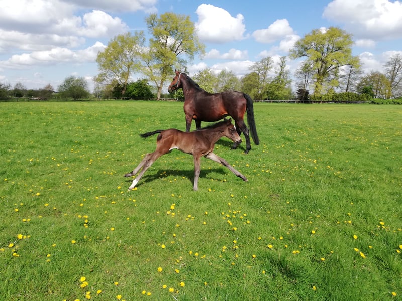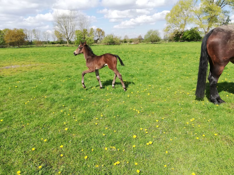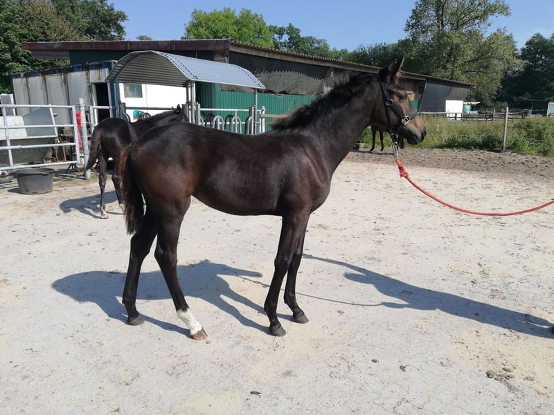 **Sales Advertisement: Elegant Hanoverian Mare for Sale** For sale is a promising Hanoverian mare, born in 2024. This young lady impresses not only with her noble appearance as a dark bay but also with her excellent potential in dressage. **Features:** - **Breed:** Hanoverian - **Gender:** Mare - **Year of Birth:** 2024 - **Color:** Dark bay - **Height:** 168 cm - **Discipline:** Dressage This mare captivates with her elegant movements and balanced temperament. She is the ideal partner for ambitious riders who wish to succeed in dressage. If you are interested, we look forward to your contact to discuss further details or to arrange a viewing appointment.
