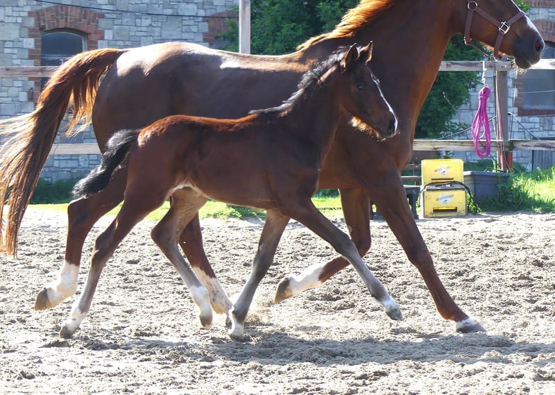 Breeding mare, has always taken in, carried and foaled well in recent years. No problem with frozen semen either! In foal for 2025 by the Holsteiner Roxett (Ramiro x Corde la Bryere) Pedigree and ultrasound picture in the pictures.