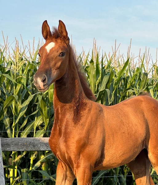 This beautiful dressage foal, born 05 / 2024, is looking for a new home. It was awarded "Gold Medal Foal" by the Hanoverian Verband. This coveted and meaningful seal of quality from the Hanoverian Verband speaks for itself. This filly's incredibly impressive talent for movement is convincing in every respect and is perfected by her beautiful appearance with that certain something. Characterized by an expressive pedigree, this foal represents an extremely interesting option for the future. All roads are open here. Please contact me by telephone on +43 650 501 75 25.