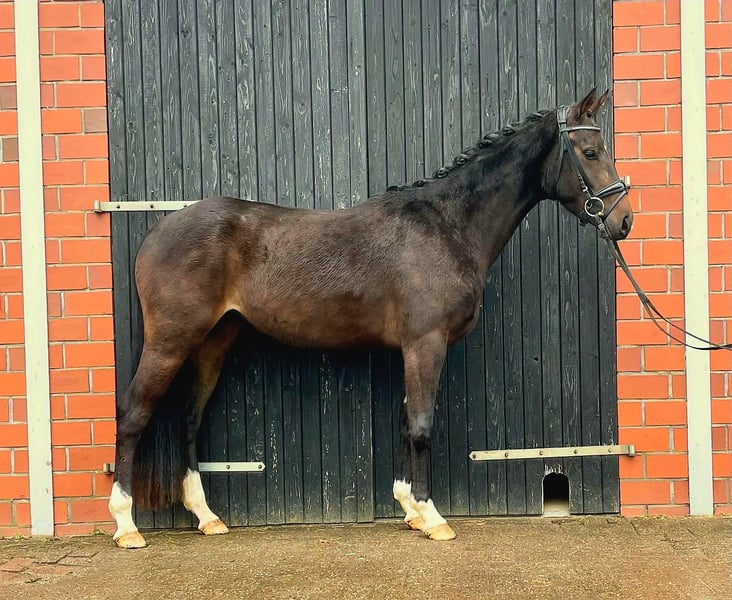 Trudi ist eine kleine 3-jährige Stute von Trussardi/ Floris Prince/ Lauries Crusador. Mit ihren Stockmaß von 1,55 m wird sie das perfekten Reitpferd für den kleineren Reiter. Trudi wird gerade auf das Anreiten vorbereitet und ist aktuell anlongiert. Sie zeigt sich der Arbeit sehr aufgeschlossen und lernt neue Dinge schnell. Im Umgang ist sie sehr brav und kennt alles was ein 3-jähriges Pferd kennen muss. Trudi durfte eine gute Aufzucht in einer kleinen Stutengruppe mit viel Auslauf und Weide genießen. Drei gute Grundgangarten gepaart mit viel Schwung und Elastizität lassen auf eine erfolgreiche Zukunft im Viereck hoffen. Sie ist natürlich schon schmiede-und verladefromm. Ein sehr guter TÜV aus 2025 liegt bereits vor. Das einzige Manko was Trudi mitbringt ist das Koppen. Der Preis steigt mit der weiteren Ausbildung, also gilt hier schnell sein lohnt sich.