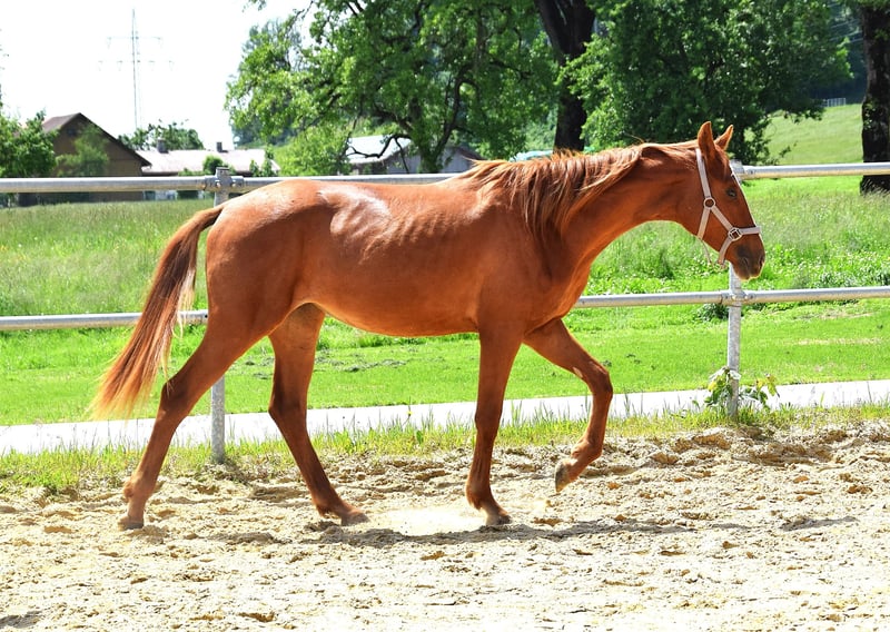 Due to the discontinuation of her horsekeeping, this tall-legged, 2-year-old mare by ESCANTO PS out of BENICIO is for sale. A very sweet, affectionate, and people-oriented mare, completely clear-headed and very resilient, with excellent gaits. She is tall, elegant, correct, very brave, and full of charm. She is sure to become an outstanding riding horse! Raised in an open stable, she is also accustomed to staying in a box at night. Regularly wormed, vaccinated, and presented to the blacksmith. Born April 2023, chestnut, still unbroken. Available at a fair price to good hands, no dealers or riding schools. Price only after telephone contact. Lineage from the SCHLIESSERIN mare, one of the best Hanoverian mare lines! Videos available upon request and only with full name, address, and WhatsApp number.