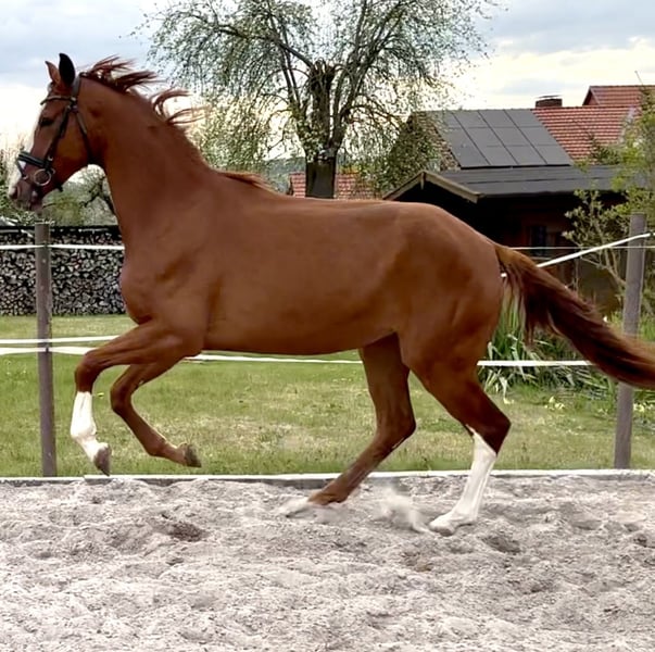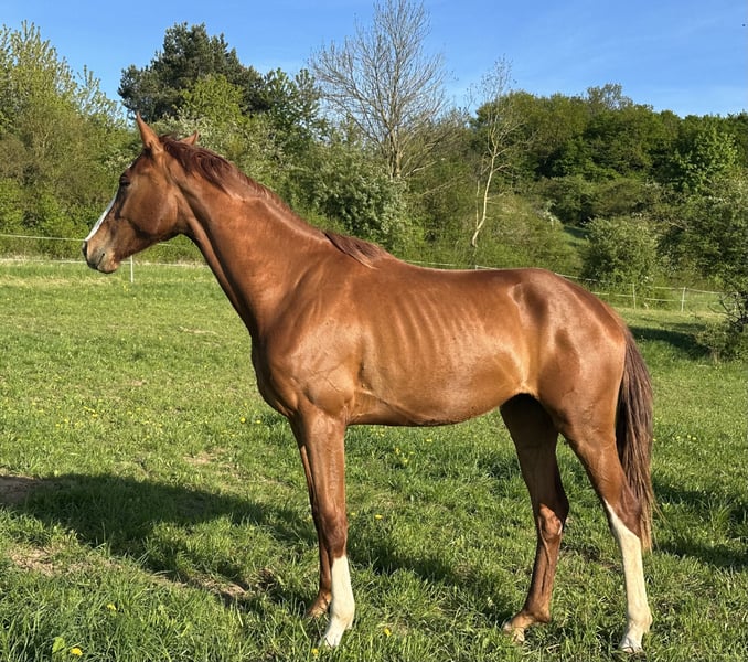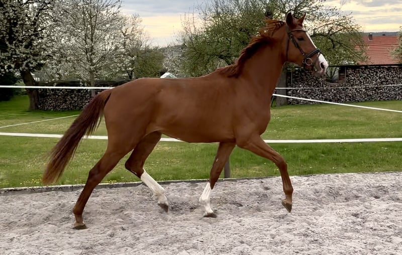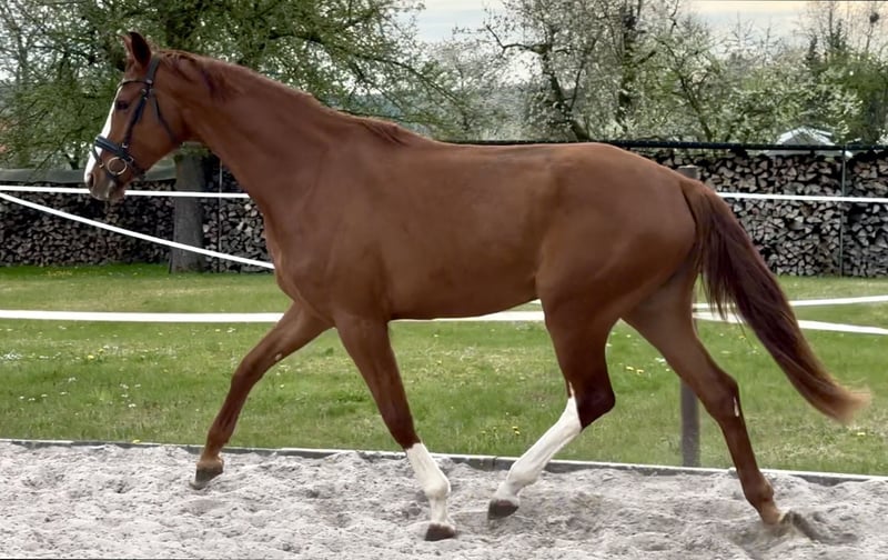 Bezpośrednio od hodowcy, z pierwszej ręki – aktualnie w naszej przygotowalni do jazdy. Młoda klaczka z dużymi partiami, długonoga, poprawna, z trzema bardzo dobrymi gniazdami, oferuje wszystko, aby stać się obiecującym koniem do jazdy i ujeżdżenia. Wyjątkowy charakter, przywiązana, chętna do pracy, odważna. Również interesująca z punktu widzenia przyszłej hodowli. Matka StPrSt, pierwsza klasa dekorowana na wystawie Herwart v.d. Decken, sama odnosząca sukcesy w hodowli. Babcia StPrSt, reserve w konkursach ujeżdżenia. Trzecia matka (Londonderry) wyprodukowała konia S* i 4*S – międzynarodowa klacz Grand Prix, m.in. z tego pokolenia.