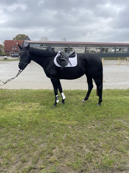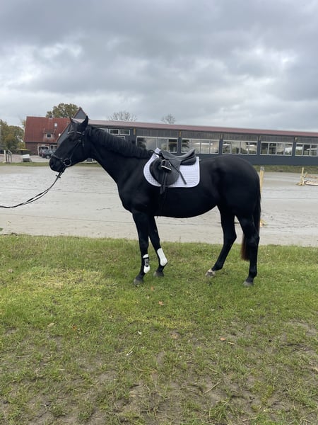 Hannoveraner Rappstute – 3 Jahre, 165 cm, wächst noch Sie ist möchte was tun und lernt schnell. Zum Verkauf steht eine vielversprechende, 3-jährige Hannoveraner Rappstute mit aktuell ca. 165cm Stockmaß (im Wachstum). Sie ist schonend angeritten, sicher in allen Gangarten beide Seiten. Sie ist unerschrocken und ihres Alters entsprechend Mega gelassen. Für den Anfänger und auch Fortgeschrittenen. Sie wird vom Boden aus gearbeitet, kennt die Longe und zeigt sich dabei aufmerksam, lernwillig und gelassen. Im täglichen Umgang ist sie sehr brav, menschenbezogen und unkompliziert. • Altersgemäß schonend gearbeitet • Geländeerfahrung am Strick, souverän und entspannt • mittlerer Rang-Ranghoch, dabei herdenverträglich und sozial Sehr gute Grundlage für den weiteren Ausbildungsweg Eine ideale Stute für alle, die sich eine zuverlässige, charakterstarke Partnerin mit solider Basis wünschen.