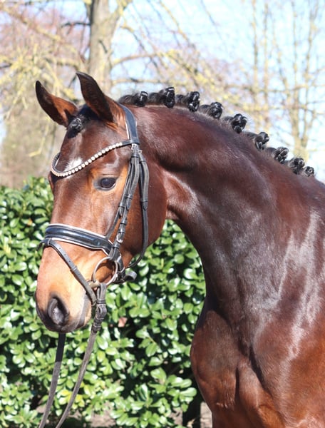 Charming 3-year-old mare by Galaxy x Florencio, featuring an outstanding movement pattern. She is very well-behaved in handling but has not yet been ridden under saddle. Price excluding VAT. Inquiries only by phone; emails will not be answered.