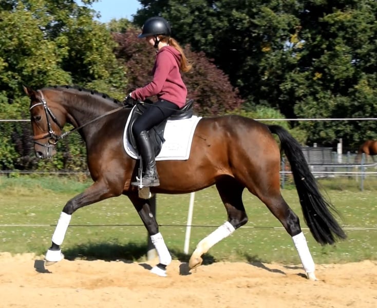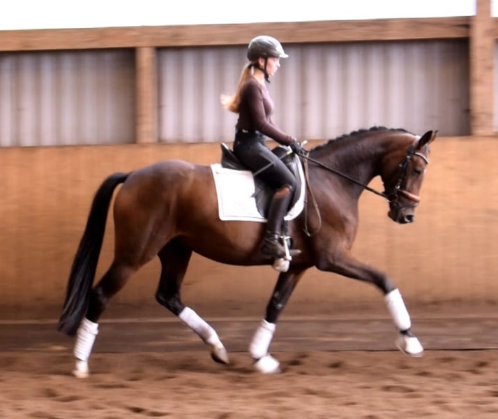 A horse like you rarely find. Beautiful, expressive mare equipped with three excellent gaits. Reliable in character and very easy to ride. Vajana is perfectly suited for both demanding dressage sport and amateur riders. She is very well trained for her age and is on her way to Dressage Horse - A. Vajana is ridden in the indoor arena and on the outdoor arena, where she presents herself absolutely uncomplicated. Trial rides possible at any time by arrangement. More information can be found on our website. Hof Heisterbusch Team.