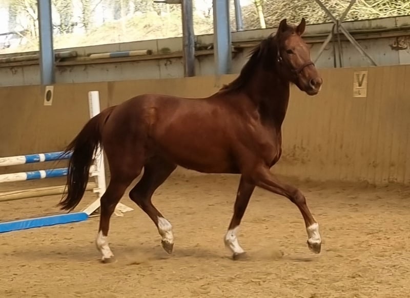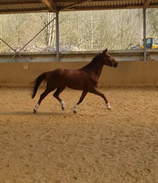 Zum Verkauf steht eine wunderschöne vierjährige Hannoveraner Stute von Flashbang x Vivaldi x Fidertanz. Flashlight besitzt tolle Grundgangarten und ist sicher angeritten, nun ist sie bereit für ihre weitere Ausbildung. Außerdem zeichnet sie sich durch einen tollen, ehrlichen und unerschrocken Charakter aus. Mit anderen Pferden ist sie sehr gut verträglich, ebenso Schmiede- und verladefromm. Bei Interesse schreiben Sie mir gerne eine Nachricht