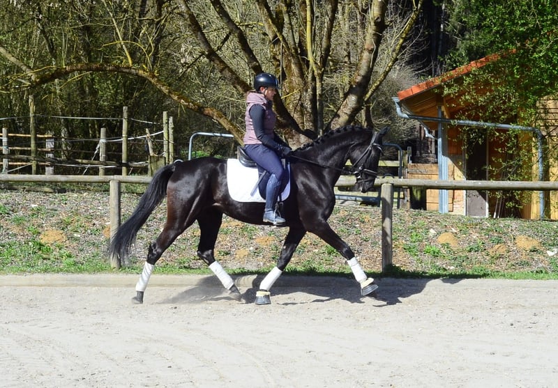Schicke Rappstute mit sehr viel Talent und Vermögen am Sprung, mit toller Einstellung, überzeugt sie durch ihre Manier. Mit 3 guten Grundgangarten ausgestattet. Eine besondere Empfehlung für den Vielseitigkeitssport.