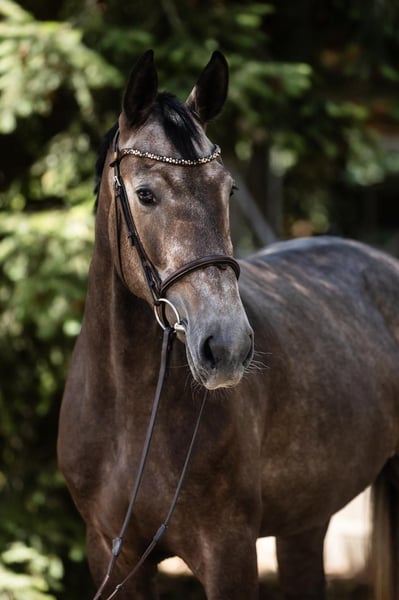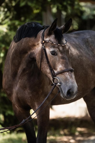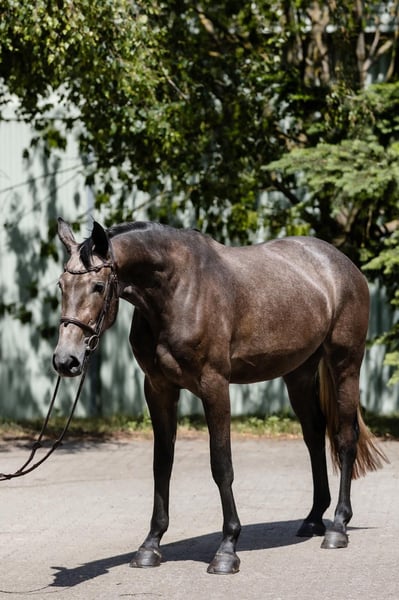 Elegancka klacz hanowerska, urodzona w 2022 roku, o imponującej posturze i obiecującej przyszłości. Ta młoda klacz prezentuje się w eleganckiej szarej sierści i ma 166 cm wzrostu, co czyni ją idealnym partnerem dla ambitnych jeźdźców. Dzięki doskonałym umiejętnościom skokowym, już wykazuje naturalną reaktywność i dobre wyczucie rytmu, co wskazuje na obiecującą karierę w skokach przez przeszkody. Jest dobrze wytrenowana, uważna i chętna do nauki, co czyni ją obiecującą inwestycją w budowanie udanej kariery sportowej. Ta klacz hanowerska łączy elegancką budowę z dużym potencjałem oraz przyjazną, uważną naturą. Idealna dla jeźdźców poszukujących utalentowanego młodego konia, który może się rozwijać zarówno w skokach, jak i w treningu. Obecnie przygotowuje się do pierwszych startów pod siodłem, wideo dostępne na WhatsApp.