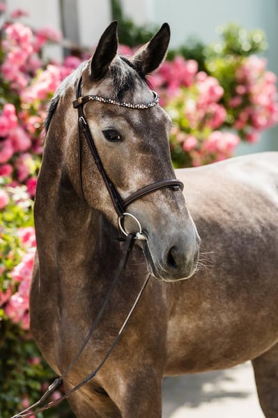 Elegante Hanoveraanse merrie, geboren in 2022, met een indrukwekkende bouw en een veelbelovende toekomst. Deze jonge merrie presenteert zich in een verfijnde grijze coat en meet 1,66 m, waardoor ze een ideale partner is voor ambitieuze ruiters. Dankzij haar uitstekende springvaardigheden toont ze al natuurlijke responsiviteit en een goed gevoel voor ritme, wat wijst op een veelbelovende carrière in de springsport. Ze is goed getraind, oplettend en leergierig, wat haar een veelbelovende investering maakt voor het opbouwen van een succesvolle wedstrijdcarrière. Deze Hanoveraanse merrie combineert elegante conformatie met groot potentieel en een vriendelijke, attente aard. Ideaal voor ruiters die op zoek zijn naar een getalenteerde jonge prospect die zich verder kan ontwikkelen in zowel springen als training. Ze bereidt zich momenteel voor op haar eerste starts onder het zadel; video beschikbaar via WhatsApp.