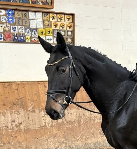 Samira is a 3-year-old mare sired by the renowned stallion Secret and also by Sir Donnerhall, which highlights her strong dam line. This still-growing mare impresses with her elegant movements, particularly her striking canter. Despite her youthful appearance, she already shows great potential for the future.