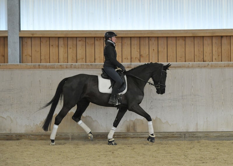 Elegante und sehr rittige Hannoveranerin mit super Einstellung, herrlich zum Reiten, sehr bequem zum Sitzen und ganz einfach in der Hand, mit leichtfüßigen Bewegungen. Die Stute von Imposantos ist nervenstark und im Umgang als auch unter dem Sattel ein wahrer Schatz, ist sehr rittig und bereits sicher auf dem Weg zu A-Niveau ausgebildet, so dass sie demnächst problemlos in Dressurpferdeprüfungen eingesetzt werden kann.