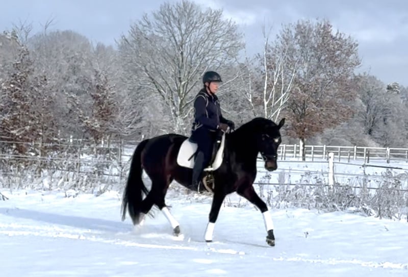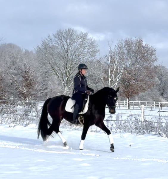 This lovely mare is very confident despite her young age and is eager to explore the world! She comes from a very strong dam line and has all the qualities to become an excellent young dressage prospect. Thanks to her exceptional temperament, she is also ready for all kinds of adventures and fun. If you're looking for a best friend for both enjoyment and sport, she's the perfect match! She is also shoe and load-in friendly. Breeding inspection without any issues. For more information, please contact me by phone or WhatsApp at 0172-2942839.