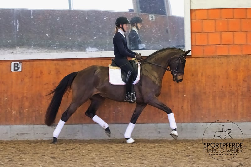 Hannoveraner Stute | *2022 | ca. 1,66 m ⚜️ Fair Deal – Fürst Nymphenburg ⚜️ ✨ Rittigkeit, Charakter & echte Perspektive ✨ Eine junge Stute, die bereits jetzt mit außergewöhnlichem Reitgefühl und bemerkenswerter innerer Ruhe überzeugt. Diese bewegungsstarke Tochter des Fair Deal begeistert mit: • kraftvoll unterfußendem Hinterbein • natürlicher Balance und schöner Selbsthaltung • klarer Leistungsbereitschaft • feiner Sensibilität für die Hilfen • ausgeglichenem, kooperativem Charakter Seit ca. 3 Monaten unter dem Sattel zeigt sie sich absolut unkompliziert, lernwillig und stets positiv eingestellt. Sie vermittelt ein sehr angenehmes, harmonisches Reitgefühl und möchte ihrem Reiter jederzeit gefallen. Im täglichen Umgang ist sie freundlich, nervenstark und unkompliziert – eine junge Dame, die sowohl im Stallalltag als auch unter dem Sattel Freude bereitet. Eine Stute mit klarer Perspektive für den gehobenen Dressursport und zugleich eine Partnerin mit Herz. 📄 Ein aktueller TÜV liegt selbstverständlich vor. 📍 Standort: bei Stade 📞 Kontakt: +49 173 3013499