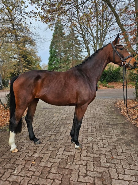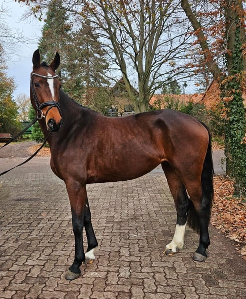 Gerade angeritten überzeugt diese dreijährige Stute durch ihren Charakter und Lernwilligkeit. Joana ist sehr brav im Umgang und man kann sie bereits in allen drei Grundgangarten gut reiten, egal ob in der Halle oder draußen. Aufgrund ihrer Einstellung ist sie evtl. auch für erfahrene Junioren geeignet. Sie versucht immer alles richtig zu machen. In neuen Situationen benötigt sie noch Sicherheit und Unterstützung, aber das wird sich mit der weiteren Ausbildung sicherlich noch verbessern. Ein tolles Pferd um sich im Winter gemeinsam auf die neue Saison vorzubereiten. Sie läuft aktuell barhuf und kommt damit gut zurecht. In der Herde ist sie ebenfalls sehr verträglich. Ein TÜV liegt noch nicht vor, kann bei Bedarf aber natürlich gemacht werden. Bei Interesse bitte unter 01711928847 Kontakt aufnehmen. Gerne kann auch ein Probereiten verabredet werden.