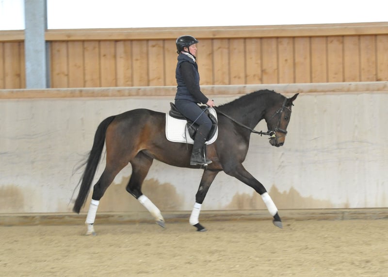 Bezaubernde 4 j. Lady mit bester Rittigkeit und viel Talent. Diese äußerst schöne Sportstute von Da Costa macht einfach nur riesig Spaß zu Reiten, zwar noch nicht so lange unterm Sattel macht sie ihre Aufgaben tadellos, schon am Zügel und mit viel Gleichmaß ausgestattet. Ein richtiges Doppeltalent für Dressur uns Springen mit viel Potential. Ein ideales Damen- und Juniorenreitpferd.