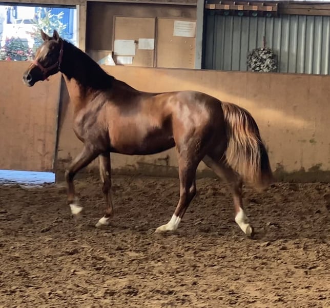Ta córka Livaldona zachwyca swoim pięknym kolorem i wspaniałą twarzą - po prostu piękna do zakochania. Matką jest odnosząca sukcesy w sporcie jeździeckim klacz państwowa Quintessenz od Quaterbacka. Quintessenz jest również pełną siostrą Grand Prix odnoszącego sukcesy Quite Righta. Jeźdzalność Quibelle jest wspaniała, zawsze oferuje swoją pomoc z pełną motywacją i cieszy się codzienną pracą. Super wnętrze i nastawienie. To koń szkoleniowy, jakiego się pragnie! Przedstawiamy duży przegląd, przegląd jest nienaganny / w idealnym stanie (w tym szyja i grzbiet). Klacz pochodzi z własnej hodowli i była wychowywana w najlepszych warunkach oraz delikatnie ujeżdżana. Quibelle zna pastwisko - i jest absolutnie wspaniała w relacjach społecznych w stadzie. Transport i wyjazdy również całkowicie łatwe.
