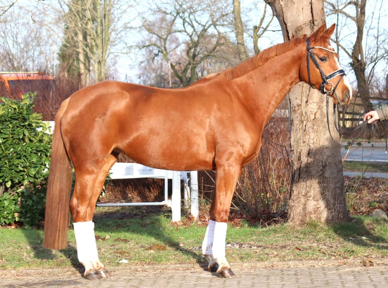 Sympatische 4 jährige Stute von Damaschino x Depardieu, die mit 3 guten Grundgangarten überzeugt. Sie ist super brav im Umgang und bereits anlongiert. Die Stute zeigt sich in der Arbeit sehr unkompliziert ist jedoch noch nicht angeritten. Preis zzgl. Mwst. Anfragen nur telefonisch, E-mails werden nicht beantwortet.