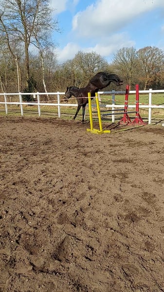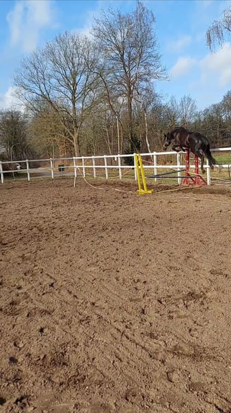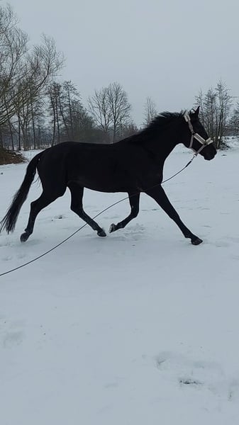 I purchased this mare myself just last year. Shortly thereafter, I found out I was expecting twins. This mare is so eager to learn that it would be a shame for her to stand around unused. She was originally intended to be my future competition horse, but unfortunately, I simply won't have the time to train her properly. She is worked on a daily basis. The mare is very affectionate and enjoys cuddling. She has such quick, agile front legs when jumping. It’s really a pity that I have to part with her, but she would feel more comfortable with a rider who actively works with her. I lunged her for three or four months to properly prepare her for riding. Afterwards, I sat on her (while pregnant). I always felt confident with her, otherwise I wouldn’t have done it. After the fourth ride, I felt the urge to go for a walk in the field at a walk. She is simply so well-behaved. There’s no need to longe her before riding. She has enough go and is not overly hot or spirited under saddle. We don’t have an indoor riding arena, and she has always been ridden outside next to a road. That doesn’t bother her. We have also been out on two trail rides. I can imagine someone who enjoys high-level show jumping but also rides dressage or eventing. I also see her fitting well with a young, ambitious rider because she is so calm and reliable. The mare is absolutely stunning. Just look at her and fall in love.