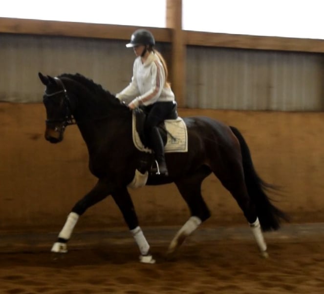 Ein ganz tolles Ausbildungspferd mit viel Qualität fürs Viereck und unschlagbarem Charakter! Sie hat traumhafte Bewegungen und lässt sich super arbeiten. Lady Elchi ist angeritten und verleiht dem Reiter stets ein tolles Reitgefühl. Mit viel Schwung ausgestattet, lässt sie jetzt schon erkennen, dass sie ganz viel Potenzial hat. Auch im Umgang ist sie ein echter Schatz und ist für jeden Spaß zu haben. Lady Elchi ist bei uns geboren. Im Herdenverband mit gleichaltrigen aufgewachsen. Erstes Video unter dem Reiten kann auf Wunsch geschickt werden. Lady Elchi koppt, was sie bereits im Fohlenalter begann. Dieses Verhalten hat sich unter dem Reiter nicht negativ bemerkbar gemacht und ist bei ihr nicht leistungs- oder gesundheitsbeeinträchtigend. Aus diesen Grund verkaufen wir diese Ausnahmestute weit unter Wert.