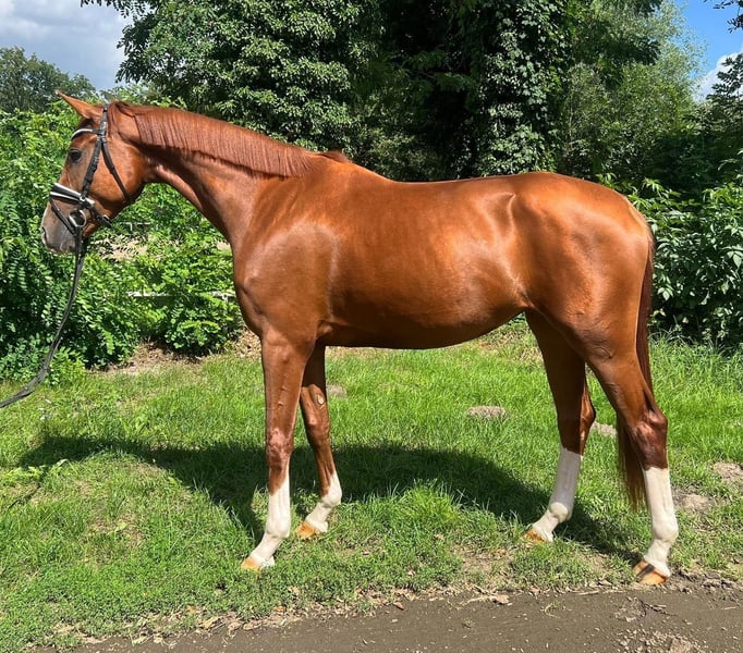 ✨ Stylish Young Dressage Horse with Excellent Character for Sale ✨ For sale is an expressive 4-year-old chestnut mare with outstanding potential for dressage. Breed: Hanoverian Color: Chestnut Height: approximately 1.74 m (17.1 hh) Age: 4 years Pedigree: Sezuan - Fürst Romancier Training: at the level of Dressage Horse A, progressing towards Dressage Horse L Gaits: all three gaits are equally well-developed and balanced Temperament: completely honest, nervously steady, human-oriented, and straightforward in daily handling This young horse impresses with her elegant appearance, lovely temperament, and talent under saddle. She consistently shows willingness to perform and learn – ideal qualities for a successful future in the dressage arena. She is currently highly placed in A-level dressage competitions. Whether an ambitious amateur or a professional rider – this horse has everything one could wish for in her further training. Directly from the breeder. A video can be sent upon request. Location: 29336 Nienhagen