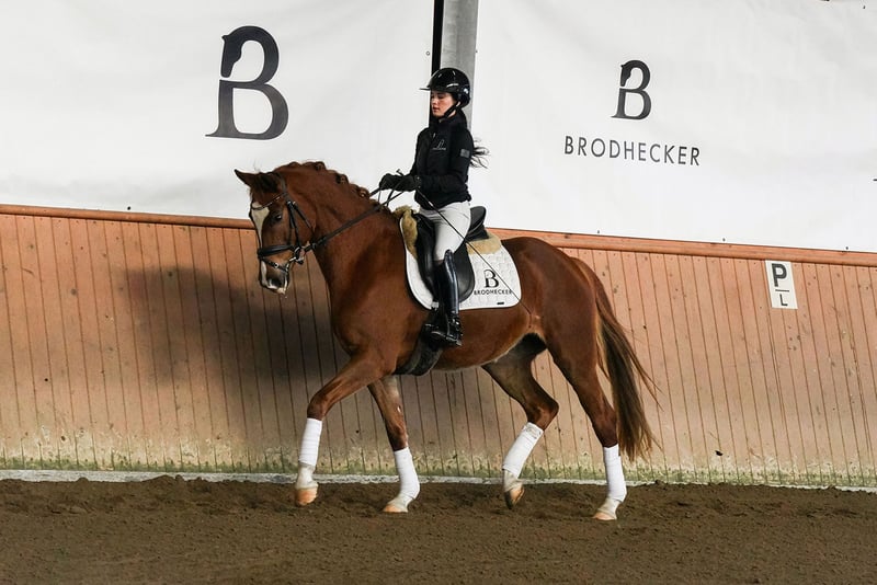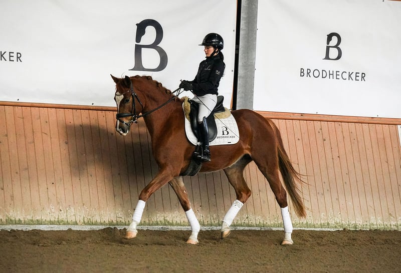 For sale are 35 dressage, show jumping, and leisure horses directly from the breeder. All sale horses can be viewed at: https://brodhecker-burghof.de/sportpferde/ Frederike impresses with three good basic gaits, excellent rideability, and the desired go. Always motivated and eager to learn, she consistently brings her rider a great deal of joy in daily training. Her sire, Flashback, participated in the World Championships for dressage horses and is now successfully competing in dressage tests up to S*** level with Olympic gold medalist Dorothee Schneider. If you are interested in our sale horses, please feel free to contact us by phone or WhatsApp: Show jumping horses - Tel. (+49) 159/06026914 (Johannes Brodhecker) Dressage horses - Tel. (+49) 172/8733686 (Volker Brodhecker)