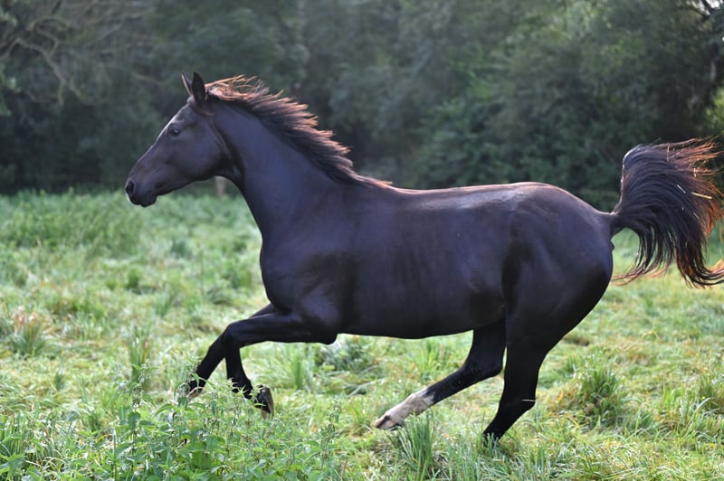 Vendo mi yegua de 5 años, criada por mí desde potra. Mide 1,61 m y presenta tres aires básicos muy buenos. Color negro con castaño oscuro. Fue montada por primera vez en primavera de 2025, en una edad adecuada. Luego pudo disfrutar de toda la temporada en el campo. Desde noviembre de 2025 vuelve a estar montada. Lamentablemente, no puedo dedicarle todo el tiempo que necesita, por lo que aún no ha sido progresada más allá de lo básico. Camina con calma en todos los aires bajo la jineta, pero con mucha energía y carácter. No es apta para principiantes. Se comporta bien con el herrador. No ha viajado mucho en remolque, pero entra sin problemas. Ubicación: cerca de 38100