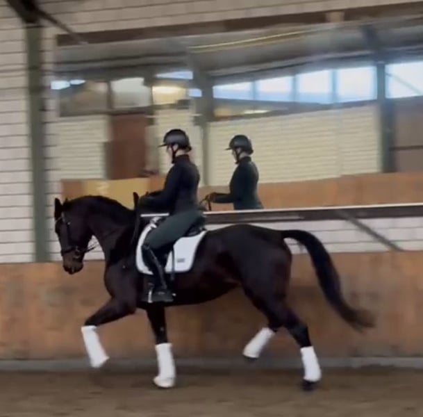 Elegant Hanoverian Mare for Sale Available is a beautiful dark brown Hanoverian mare, born in 2020. With a height of 16.1 hh, she impresses with her elegant appearance and well-proportioned build. The mare is ideally suited for dressage and demonstrates considerable talent along with a promising basic training. She is healthy, well-behaved, and pleasant to ride. Please contact me by phone at 01775437741. If you are interested or have any further questions, I am happy to assist. Viewing and trial rides can be arranged by appointment.