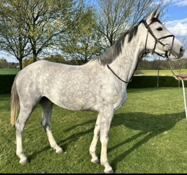Hannoverian mare, born in 2021, grey, standing at 16.1 hh – a promising young prospect for show jumping. This elegant mare impresses with her athletic build and natural talent for jumping. She is already in training and shows great potential for competitive riding. With her appealing appearance and friendly demeanor, she is an ideal partner for both ambitious young riders and experienced show jumpers. A true asset to any jumping stable! Truly a horse for the highly dedicated show jumper.
