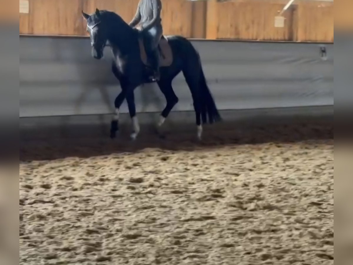 Diese beeindruckende Hannoveraner Stute wurde im Jahr 2021 geboren und besticht durch ihre elegante Erscheinung und ihr vielversprechendes Potenzial im Dressursport. Mit ihrem kräftigen Stockmaß von ca. 170 cm vereint sie Größe, Präsenz und Bewegungsqualität in idealer Balance. Besonders hervorzuheben ist ihr ausgeglichenes Wesen: Im Umgang zeigt sie sich äußerst lieb, menschenbezogen und verschmust. Die Stute hat bereits ein gesundes, typvolles Fohlen zur Welt gebracht und überzeugt somit nicht nur durch ihre Qualität unter dem Sattel, sondern auch in der Zucht. Die Rappfarbe unterstreicht ihren edlen Charakter und macht sie zu einem echten Blickfang im Stall und auf dem Turnierplatz. Sie ist gut geritten, zeigt eine aufgeschlossene und freundliche Natur und ist bereits in der Grundausbildung gut vorangekommen. Ihre Bewegungen sind taktklar, schwungvoll und ausdrucksstark – perfekte Voraussetzungen für eine erfolgreiche Karriere im Dressurviereck. Diese Hannoveraner Stute ist für ambitionierte Reiter und Züchter gleichermaßen interessant, die eine talentierte, gut gerittene Partnerin suchen, um gemeinsam an ihren Dressurlektionen zu arbeiten und Erfolge zu erzielen. Sie ist gesund, regelmäßig entwurmt und frei von bekannten gesundheitlichen Einschränkungen. Eine tolle Stute für Reiter, die ein ehrliches, unkompliziertes und gleichzeitig vielseitig einsetzbares Pferd suchen – egal ob für Freizeit, Sport oder Zucht. Ein Pferd mit viel Potenzial, das noch weiter gefördert werden kann. Für weitere Informationen oder einen persönlichen Eindruck stehe ich gerne zur Verfügung.