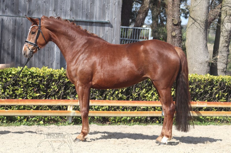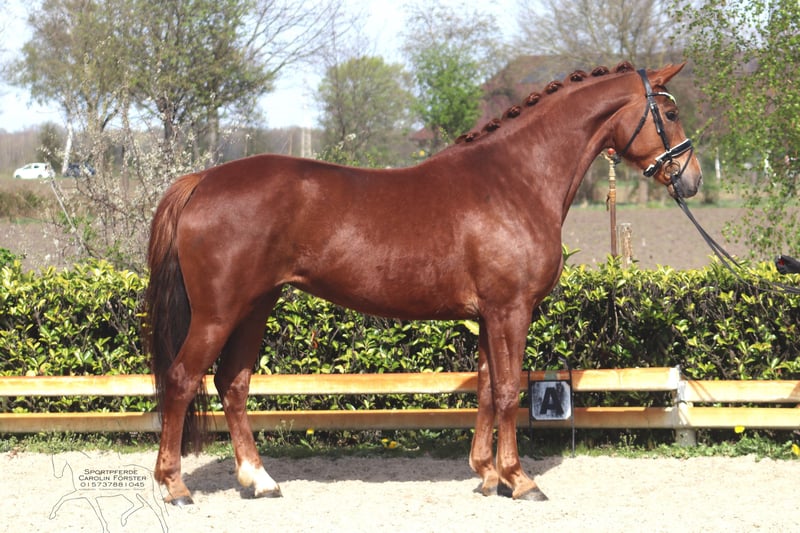 Beautiful 5-year-old mare by Damaschino out of a Scolari dam This mare impresses with three very good basic gaits and a typy appearance. Due to personal reasons of the breeder, she was started in training later than usual, allowing her ample time to mature. She is currently being ridden under saddle. Price plus VAT. Video to follow. For inquiries, please contact us by phone only at 015737881045. Written inquiries cannot be answered.