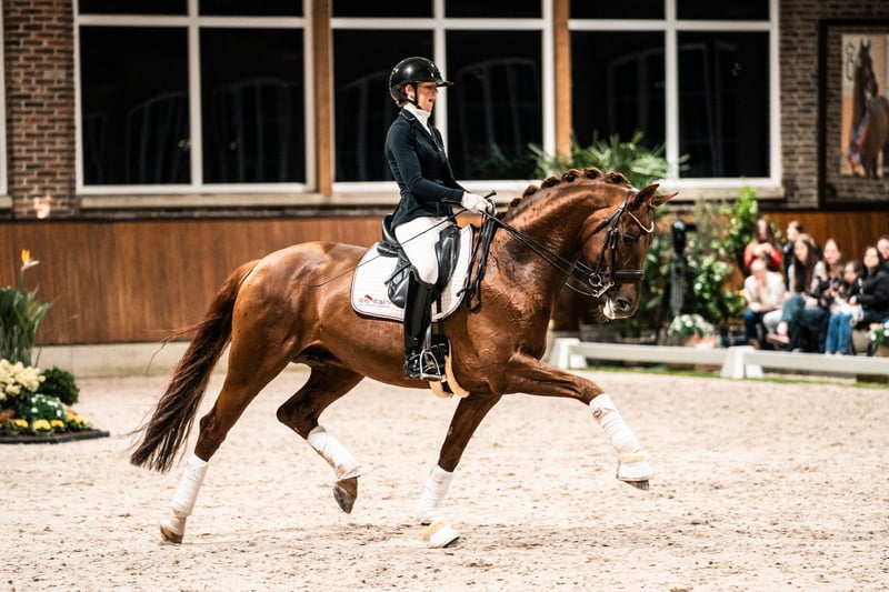 Ta młoda klacz obecnie rozpoczyna swoją karierę w ujeżdżeniu. Jej siostra bliźniacza po For Dance już wygrała 8 konkursów M** w ujeżdżeniu! Zdjęcie: ojciec Vivaldos (Logemann)