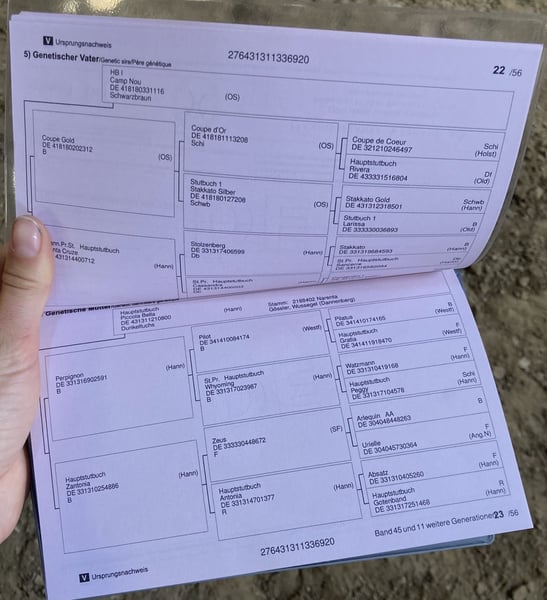 Calea is a 5-year-old Hanoverian mare with a promising pedigree and has been with me since she was three years old. She originally comes from Rittergut Schick. She has been gently worked from the ground so far, is familiar with the saddle and lunge, has been out on several trail rides, has done a lot of desensitization training, and has recently also jumped a little bit free. During this, she has shown herself to be very calm, clear-headed, and confidently jumps over everything. She walks small rounds alone and in groups in a relaxed manner. Calea has been lightly backed – with a lot of calm, patience, and love. A video is attached. Unfortunately, during dismounting, there was an unfortunate chain of events that startled her and caused her to jump away. Since then, she has been skeptical, and I have not practiced further. However, I am fundamentally convinced that this can be rebuilt with calmness and patience. Nevertheless, I want to consciously leave this in the hands of the new owner. Due to my personal ethical considerations regarding riding, I no longer feel safe and clear enough in my communication. Therefore, she is also being offered at a low price. She is completely unspoiled and has had plenty of time to grow. Like many young horses, she was initially a bit soft in the hindquarters due to knee stability, which is why I consciously left her in a large open stable with a solid floor in consultation with my veterinarian for some time. At three years old, a comprehensive veterinary examination including the back was conducted, with no findings. The images are not available as I did not plan to sell her at that time. But just as a small side note :) A current veterinary examination can, of course, be done by the buyer. Calea is healthy, is barefoot, has generally good hoof quality, but tends to occasional cracking, especially in summer; however, she has never had problems with hoof abscesses or similar under my care. She has two small white spots in her left eye (corneal scars), and the corneal injury in winter 23/24 was likely a result of a minor trauma, which was treated by a veterinarian and does not cause her any problems. The plan was to train Calea myself and use her as my young horse in eventing. However, I have decided to part ways with the "horse" chapter of my life for personal and ethical reasons after many years. Therefore, it is particularly important to me that Calea finds a home where she can continue to live a good, horse-appropriate life. Quality over price; unrealistic inquiries will not be responded to. I do not aim to make money from the sale, especially since I bought her at a higher price when she was three, but I place great value on openness and honesty – also regarding her quirks and special traits. I sincerely wish that someone will continue Calea's training patiently and fairly. She truly deserves that. I do not respond to pre-formulated or impersonal inquiries. Please contact me with specific questions and feel free to include a few personal words, or call me directly.
