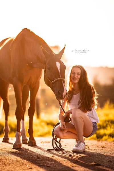 Calea ist eine 5-jährige Hannoveraner Stute mit vielversprechender Abstammung und seit ihrem dritten Lebensjahr bei mir. Ursprünglich kommt sie von Rittergut Schick. Sie wurde bisher schonend vom Boden gearbeitet, kennt Sattel und Longe, war mehrfach im Gelände spazieren, hat viel Gelassenheitstraining gemacht und ist zuletzt auch ein wenig frei gesprungen. Dabei zeigt sie sich sehr ruhig, klar im Kopf und springt souverän über alles. Sie geht alleine und in der Gruppe entspannt kleine Runden spazieren. Calea wurde ganz leicht angeritten - mit viel Ruhe, Geduld und Liebe. Ein Video ist angefügt. Beim Absteigen kam es zuletzt leider zu einer unglücklichen Verkettung von Ereignissen, wodurch sie sich erschrocken hat und weggesprungen ist. Seitdem ist sie skeptisch und ich habe das nicht weiter geübt. Grundsätzlich bin ich aber überzeugt, dass sich das mit Ruhe und Geduld wieder aufbauen lässt. Dennoch möchte ich das bewusst in die Hände der neuen Besitzer legen. Aufgrund meiner persönlichen ethischen Auseinandersetzung mit dem Reiten fühle ich mich nicht mehr sicher und klar genug in der Kommunikation. Deshalb wird sie auch zu einem günstigen Preis abgegeben. Sie ist absolut unverbraucht und hat viel Zeit zum Wachsen bekommen. Wie viele Jungpferde war sie anfangs kniestabilitätsbedingt etwas weich in der Hinterhand, weshalb ich sie in Absprache mit meinem Tierarzt bewusst in einem großen Offenstall mit befestigtem Boden noch einige Zeit in Ruhe gelassen habe. Dreijährig wurde eine große AKU inkl. Rücken durchgeführt, ohne Befund. Die Bilder liegen nicht vor, da ich damals nicht geplant hatte sie weiter zu verkaufen. Aber das nur als kleine Nebeninfo :) Eine aktuelle AKU kann natürlich durch den Käufer gemacht werden. Calea ist gesund, läuft barhuf, hat grundsätzlich gute Hufqualität, allerdings neigt sie v. a. im Sommer zu gelegentlicher Rissbildung, hatte bei mir aber nie Probleme mit Hufgeschwüre o.ä. Am linken Auge hat sie zwei kleine weiße Punkte im Auge (Hornhautnarben), die Hornhautverletzung im Winter 23/24 war vermutlich Folge eines leichten Traumas, das wurde tierärztlich behandelt und macht ihr keine Probleme. Eigentlich war geplant, Calea selbst auszubilden und sie als mein Nachwuchspferd in der Vielseitigkeit einzusetzen. Ich habe mich jedoch dazu entschieden, mich nach vielen Jahren aus persönlichen und auch ethischen Gründen vom Lebensabschnitt „Pferde“ zu verabschieden. Daher ist es mir besonders wichtig, dass Calea in ein Zuhause kommt, in dem sie weiterhin ein gutes, pferdegerechtes Leben führen darf. Platz vor Preis, auf unrealistische Anfragen wird nicht reagiert. Ich habe nicht das Ziel, mit dem Verkauf Geld zu verdienen, zumal ich sie 3 jährig auch teurer gekauft habe, sondern lege großen Wert auf Offenheit und Ehrlichkeit - auch was ihre Eigenheiten und Besonderheiten betrifft. Ich wünsche mir sehr, dass jemand Caleas Ausbildung geduldig und fair weiterführt. Das hat sie wirklich verdient. Auf vorformulierte oder unpersönliche Anfragen reagiere ich nicht. Bitte melden Sie sich mit konkreten Fragen und gerne auch ein paar persönlichen Worten, oder rufen Sie mich direkt an.