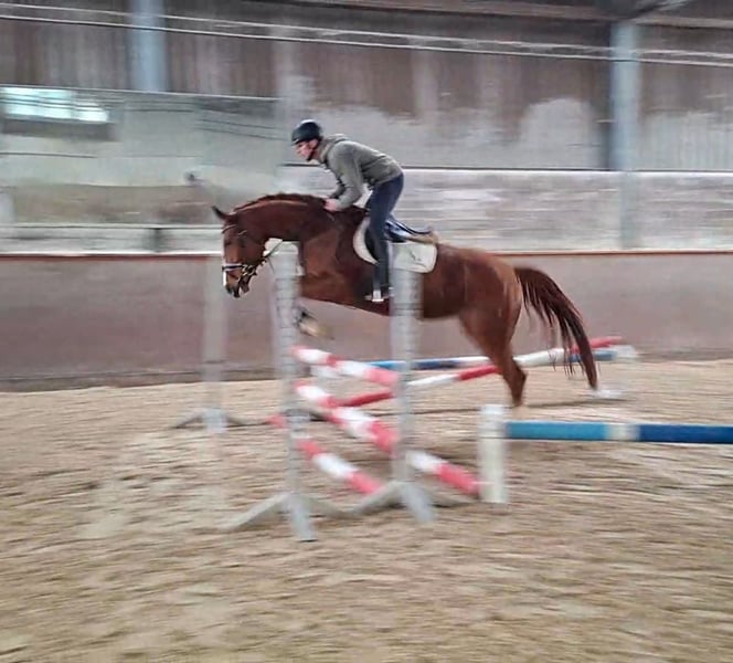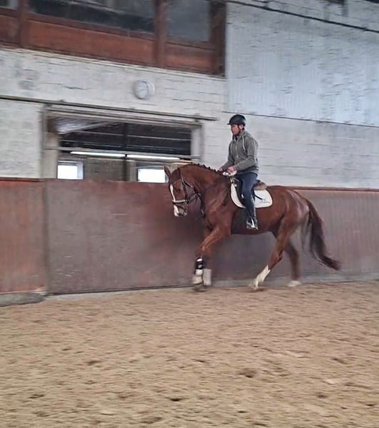Hannoverian mare, born in 2021 / currently 1.65 m tall, by Diro x Comte A very elegant and refined mare for the ambitious rider. She is excellent in handling—super sweet, people-oriented, and uncomplicated. With her first jumps under saddle, she consistently shows great motivation and a willingness to learn. Good TüV inspection available. For more details, please contact me by phone: 015257544401 Videos can be sent via WhatsApp!