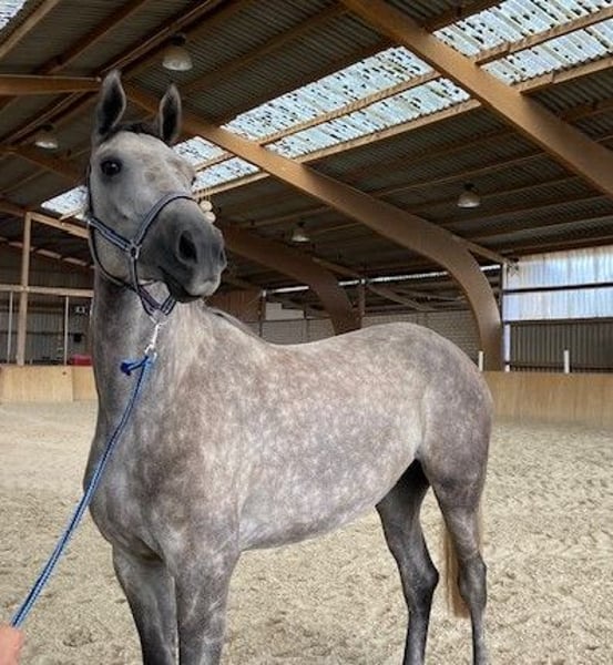 Diese top gezogene junge springbetont gezogene Stute befindet sich zur Zeit in professioneller Ausbildung. Im Freispringen zeigt sie eine hervorragende Perspektive und macht mit Spaß, Rhythmus, Übersicht und Vorsicht mit – ein echtes Naturtalent! Unkompliziertes Nachwuchsspringpferd, klar im Kopf und ohne Unarten. Bewegungsfreudig, leichtfüßig und mit drei ausdrucksstarken, lockeren Grundgangarten ausgestattet. Aufgrund, ihrer vielseitigen Veranlagung, ihres feinen Wesens und ihrer erstklassigen Abstammung eignet sie sich ideal für Amateure und Profis mit Jungpferdeerfahrung. Bei entsprechender Förderung bringt sie zudem das Potenzial für den gehobenen Springsport mit. Aus liebevoller Aufzucht, Gesund, umgänglich, vorbildlich entwickelt, optimaler Pflegezustand. Geimpft, entwurmt, gechippt, regelmäßig dem Schmied vorgestellt, schmiedefromm, verladefromm. Direkt vom Züchter. Sehr gerne zeigen wir Ihnen diese wunderbare junge Springstute vor Ort! Ein Kennenlernen ermöglichen wir umgehend. Kontaktieren Sie uns gerne telefonisch: +49 176 42765806. Der Vater, Karat du Plessis (Landgestüt Redefin), wurde 2025 gemeinsam mit Nachwuchsreiter Hendrik Greve vom DOKR in den Bundeskader berufen – als Anerkennung für die herausragenden Leistungen des Paares im Juniorensport. Darüber hinaus gilt Karat du Plessis aufgrund seiner außergewöhnlichen Rittigkeit als Ausnahmevererber unter den Spitzenhengsten: Beim 50-Tage-Test wurde seine Rittigkeit mit der Traumnote 9,5 bewertet. Die springbetonte Endnote von 8,96 sicherte ihm den Gesamtsieg. Neuner-Noten erhielt er außerdem für Galopp, Springmanier und Gesamteindruck. Ein Nachwuchspferd, bei dem man – ganz im Sinne seines Vaters – Rittigkeit, Übersicht und Freude am Sprung erwarten darf - kombiniert mit ausdrucksstarken Grundgangarten. AKU vorhanden