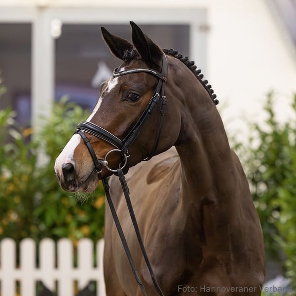 Das Pferd ist ein Verdener Auktionspferd und wird am 18.04.2026 onlive versteigert. Vom 6.04. bis zum 18.04. kann das Pferd jeden Tag beim öffentlichen Training besichtigt und ausprobiert werden. Das Startgebot bei der Versteigerung ist 8.000 Euro. Baloutje DS überzeugt mit ausgezeichneter Auffassungsgabe und vorbildlicher Leistungseinstellung – beste Voraussetzungen für höhere Aufgaben. Ihre beiden Halbgeschwister Olivia und Hysteria v. Ogano sind erfolgreich in Aufbauprüfungen des Springsports. Großmutter Fronika brachte den gekörten Hengst Lord Roscharden v. Lord Pezi (S-erfolgreich mit Louisa Zimmermann) sowie die Sportpferde Flotte Deern v. Clintard I (M-siegreich mit Sarah Hilgen) und Adalfride v. Argentinus (M-erfolgreich mit Lorenzo Barzaghi) hervor. 2. Generation Sportpferde Springen: gek. Hengst Lord Roscharden v. Lord Pezi (SPR: 1,40 m mit Louisa Zimmermann,Redefin 2013); Junior's Josy v. Junior Mariner (SPR: 1,35 m mit Pauline Nessensohn); Adalfriede/Adalfride v. Argentinus (SPR: 1,35 m mit Lorenzo Barzaghi); ZZ Top 6 v. Zatinus (SPR: 1,35 m mit Thomas Grosser); Hansemann White v. Hickstead White (SPR: 1,30 m mit Vaida Marie Kamp); gek. Hengst v. Check In (SPR: 1,30 m mit Hicham ER-RADI,Redefin 2014); StPr Flotte Deern/Flotte Deern 6 v. Clintord I (SPR: 1,30 m mit Heinz-Hermann Decker); Cuba Libre 38 v. Cannavaro (SPR: 1,30 m mit Heinz-Hermann Decker). Aufbauprüfungen Springen: Feodora D v. Check In (SPR: L); Cadbury 11 v. Cornet's Prinz (SPR: L); Leo Fantastico v. Luxius (SPR: L); Abudahbi v. Argentinus (SPR: L). gekörte Hengste: gek. Hengst Cornet's King v. Cornet's Prinz (Redefin 2018). Mutter: Flotte Deern ZL: 8/7 Turniererfolge: SPR: M 1/1. 2/3. 5/4. 5/5. 6/w. SPR: L 2/1. 10/2. 9/3. 10/4. 7/5. 16/w. SPF: L 2/2. 2/3. 2/4. 1/5. 4/w. SPR: A 1/5. 4/w. SPF: A 2/3. 2/4. 1/5. 2/w. SPR: E 1/w. Großmutter: Fronika ZL: 18/11